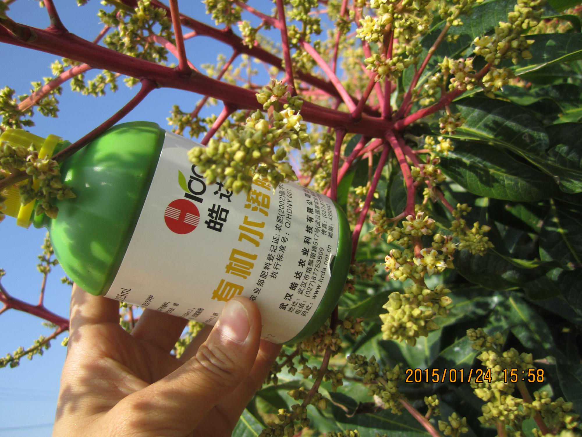 皓達(dá)有機(jī)水溶肥料是由營(yíng)養(yǎng)元素如,各種大量元素、微量元素,特別是硼、鉬、鎂等及類(lèi)營(yíng)養(yǎng)物腐植酸、黃腐酸、有機(jī)質(zhì)等,以及耦合調(diào)理劑三種主要成分組成,具有多功能性、高效性等功能。芒果是一種對(duì)微量元素和有機(jī)營(yíng)養(yǎng)需求量大的果樹(shù),特別在調(diào)花催花期、幼果膨大期都需要有大量的養(yǎng)分供給。皓達(dá)有機(jī)水溶肥料在芒果上已使用多年,果農(nóng)們對(duì)其效果也相當(dāng)認(rèn)可。下面以一個(gè)簡(jiǎn)單的案例來(lái)說(shuō)明皓達(dá)有機(jī)水溶肥料的神奇之處。