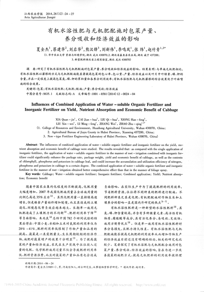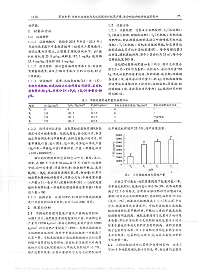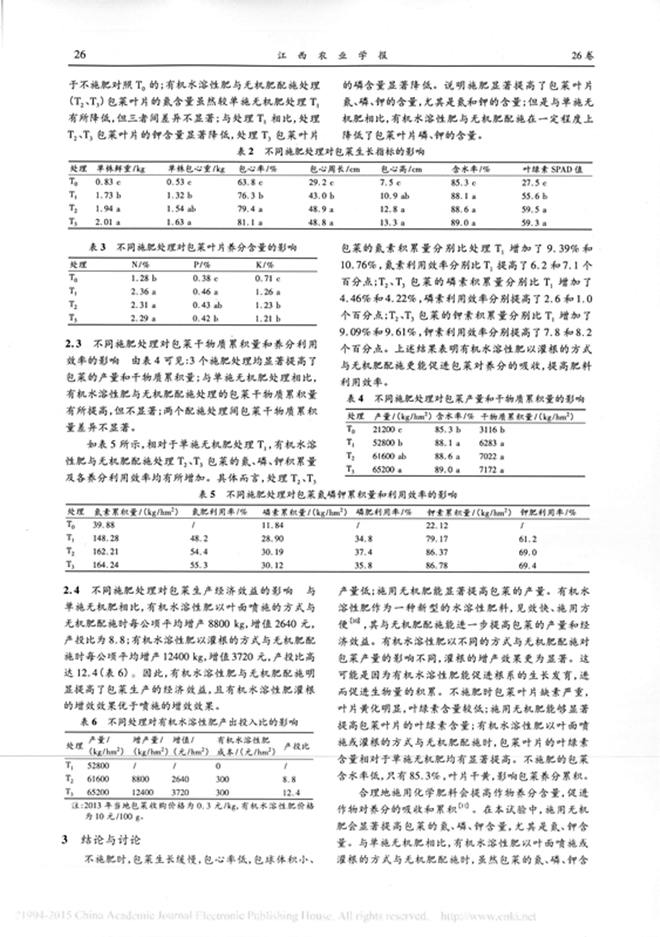 皓達有機水溶肥料與無機肥配施對包菜產量、養分吸收和經濟效益的影響