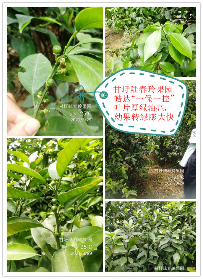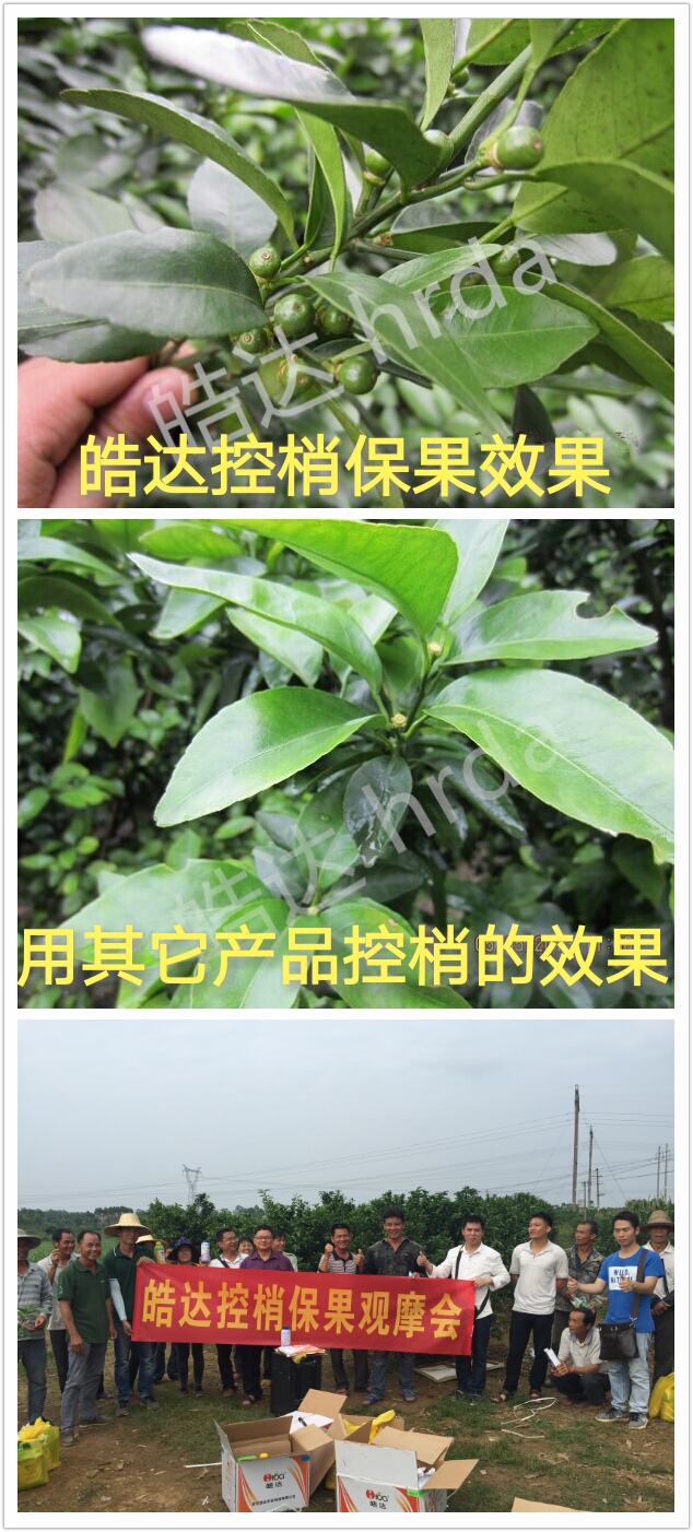 施肥時期:3-5月份?;ū9赝9?/span> 時期問題:營養不足,生理落花落果嚴重;春梢生長慢,葉片發黃。 施肥方案: 第一次保果(謝花2/3): 皓達功能肥800倍(20mL/30斤水)+皓達硼800倍(20mL/30斤水)+磷酸二氫鉀500倍(30g/30斤水)+調節藥+殺菌殺蟲藥。 第一次控旺保果:(春梢6分老熟,或打完第一次保果藥5天后) 方案1:皓達功能肥200倍(75mL/30斤水)+磷酸二氫鉀500倍(30g/30斤水)(單打)。 方案2:皓達功能肥300倍(50mL/30斤水)+磷酸二氫鉀500倍(30g/30斤水)+烯效唑。(樹弱已見新芽) 第二次控旺保果:(第一次控旺保果藥打完5-7天后) 方案1:皓達功能肥200倍(75mL/30斤水)+磷酸二氫鉀500倍(30g/30斤水)(單打)。 方案2:皓達功能肥300倍(50mL/30斤水)+磷酸二氫鉀500倍(30g/30斤水)+烯效唑。(樹弱已見新芽) 注意:大家可以根據天氣、樹勢來選擇方案,藥后24小時內下雨請補噴,控制營養藥可多次噴施,但不能與農藥一起施用。 施肥效果:促花壯花,減少生理落果。噴完第一次保果5-7天后,開始噴施控旺藥。抑制夏梢早發或不發,延長營養生長時間點,有效減少生理落果。