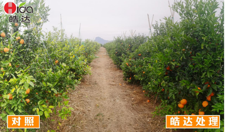 施肥時期:9-11月份增甜著色 時期問題:缺鎂、缺硼、缺鋅等黃葉、花葉;裂果、太陽果、畸型果等問題。果子著色不好,糖份不夠;果皮軟,不耐儲運。 施肥方案: 1、(9月中旬)果徑55~60mm左右,轉色皓達功能肥500倍(30mL/30斤水)+磷酸二氫鉀500倍(30g/30斤水)+蕓苔素(果子偏小,建議打兩次),促進膨果,秋梢老熟快恢復樹勢健康; 2、(10月初)間隔20天,轉色皓達功能肥500倍(30mL/30斤水)+皓達硼1000倍(15mL/30斤水)+磷酸二氫鉀1000倍(15g/30斤水)(樹勢差、黃葉多),積累營養,提前轉色; 3、(10月下旬)果徑70mm左右,轉色皓達功能肥1000倍(15mL/30斤水)+皓達硼1000倍(15mL/30斤水),美化果面、促進轉色; 4、(11月中旬)間隔20天,轉色皓達功能肥1000倍(15mL/30斤水)+皓達鈣500倍(25g/30斤水),增加單果重,增加果實硬度、延長保鮮時間。 施肥效果:增加有機物積累,轉化為糖,提高Vc含量,促進膨大;增加果皮韌性,上色均勻,果面光滑,糖度高防治爛果、裂果,提高品質;增強果實甜度,果皮柔韌度,耐儲運。