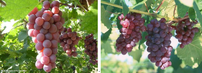 施肥時期:6-8月 膨大期 時期問題: 葡萄出現大小粒現象;缺乏營養,葉片黃化。 施肥方案:葉噴+淋根(每壺30斤水) 滴灌:皓達功能肥1-1.5kg/畝+皓達鈣1.5kg/畝,每15-20天淋1次; 葉噴:皓達功能肥800倍(20mL/30斤水)+調節劑,間隔7-10噴1次,連續2-3次效果更好。 施肥效果: 果粒膨大快,大小均勻,提早著色,顯著提高糖度。