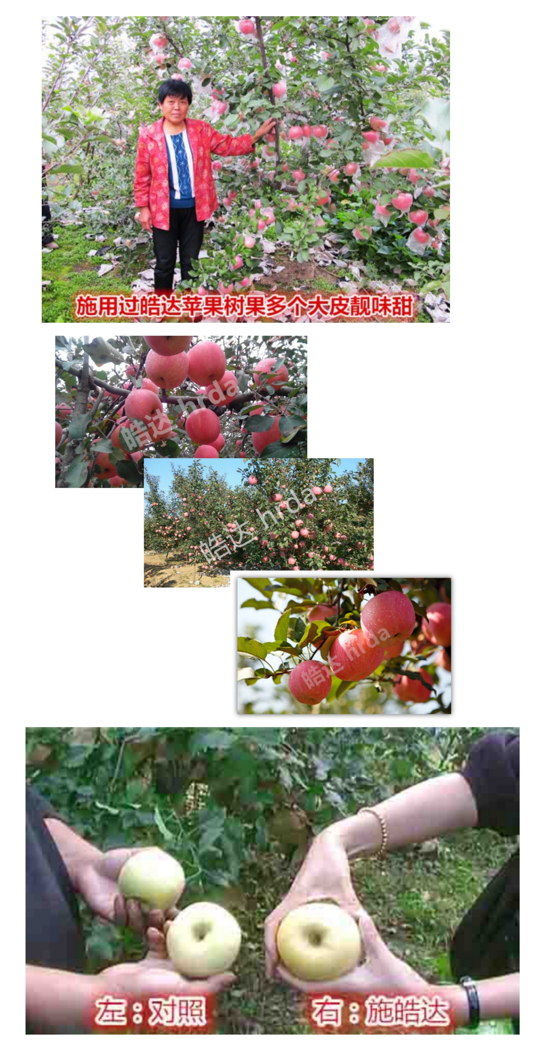 在萌芽前后和春梢旺盛生長期施入本方案,促進幼樹根系生長,使果樹成活快,擴大樹盤;后期配合皓達鋅肥,可有效預防蘋果后期“小葉病”。