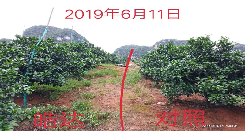 第三次:再隔10~15天,淋施高鉀型水溶肥+皓達1000倍,促進秋梢轉綠老熟,同時,葉面噴施皓達500倍+皓達磷酸二氫鉀500倍+皓達硼1000倍。