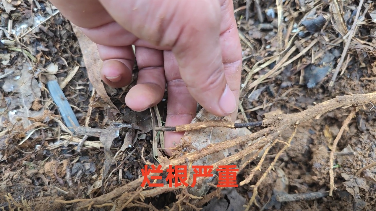 廣西仙湖潘老板前段時間發現自家沃柑樹體偏黃,皓達技術團隊診斷發現,造成沃柑樹體偏黃的主要原因是:沃柑果樹爛根嚴重,導致樹體營養無法正常供給。