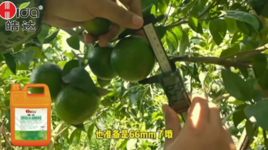 根部淋施:使用皓速補與皓達肥料增效劑混合,每套可淋施1200-1500株果樹,同時每株加入2兩皓達18-8-16復合肥。每15天進行一次,連續淋施兩次,加速果實內部營養積累,促進膨大。