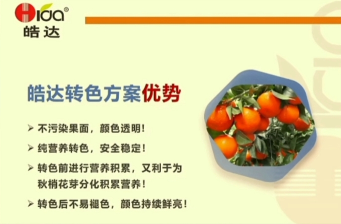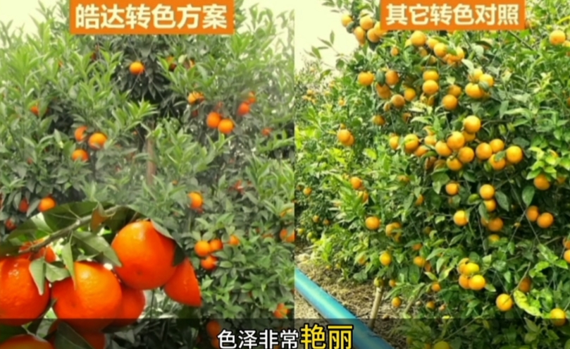 柑橘果實皮亮色艷,可直接提高商品價值,今天給大家分享皓達柑橘轉色方案如何讓果子快速轉色,果皮轉色后不褪色。