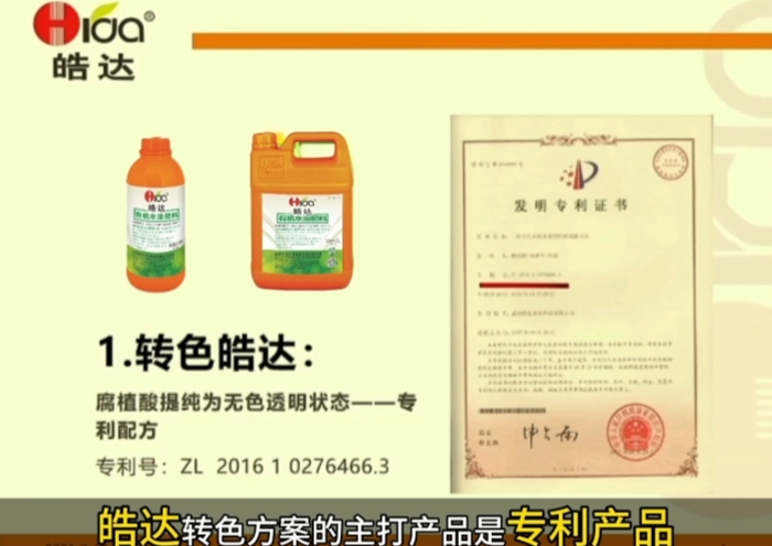 1.皓達轉色方案的主打產品:無色皓達是中國專利產品。