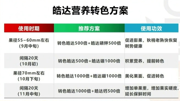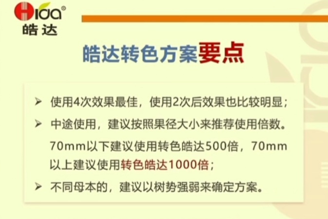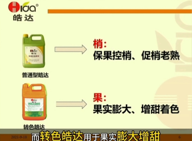 3.普通皓達用于保果控旺、促梢老熟;而轉色皓達用于果實膨大、增甜著色。