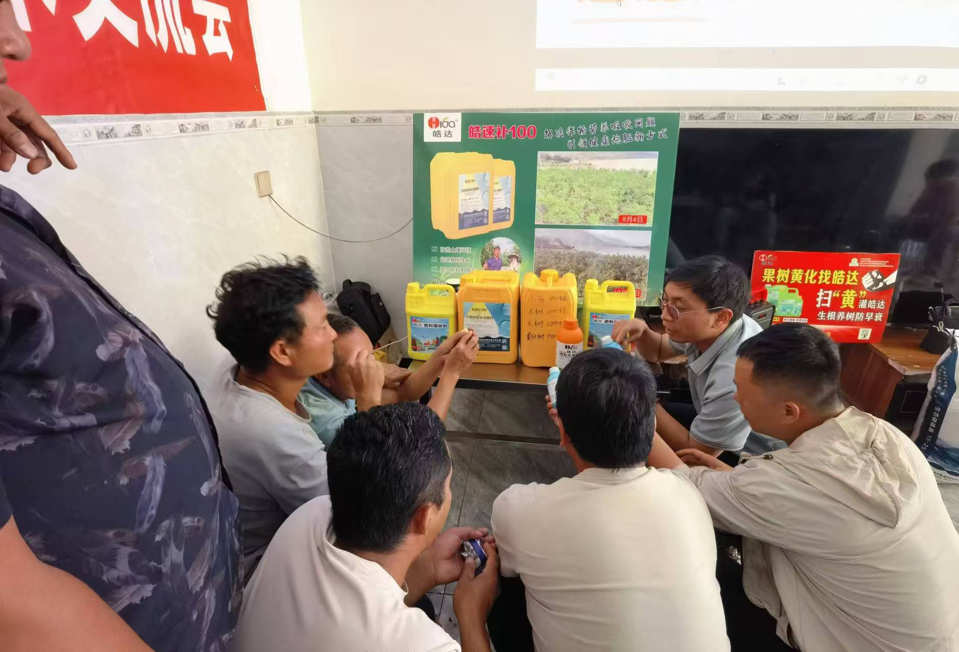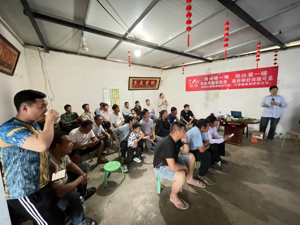 皓達農化技術服務隊的梁老師,以其通俗易懂、繪聲繪色的精妙講解,向果農朋友們介紹了如何促進花芽分化、果實膨大著色,并叮囑果農朋友們“精心培育果樹,歲歲豐盈,遠離大小年之困!”