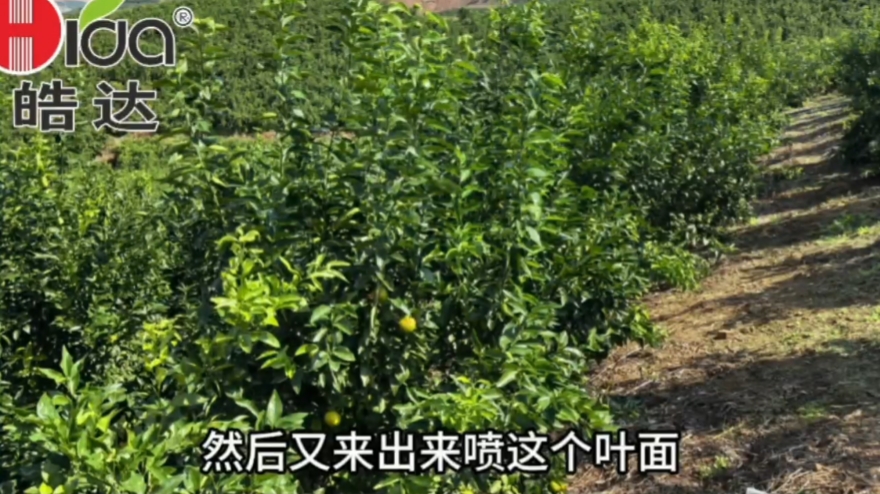 2.鄭老板還用皓達500倍+皓達硼800倍+磷酸二氫鉀1000倍方案葉面噴施2遍后,果園葉片明顯變得厚綠、油亮,樹勢整體健壯。