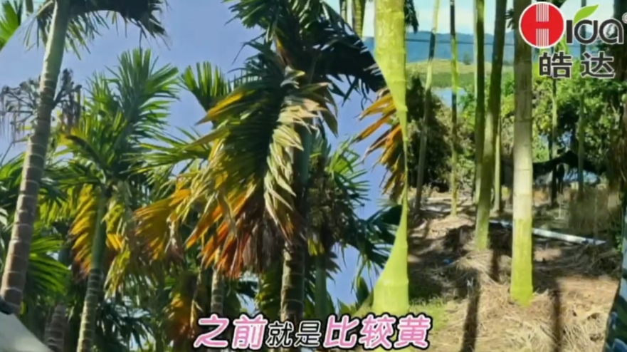 1.施用皓達(dá)之前檳榔樹體葉片小、發(fā)軟、黃化嚴(yán)重。