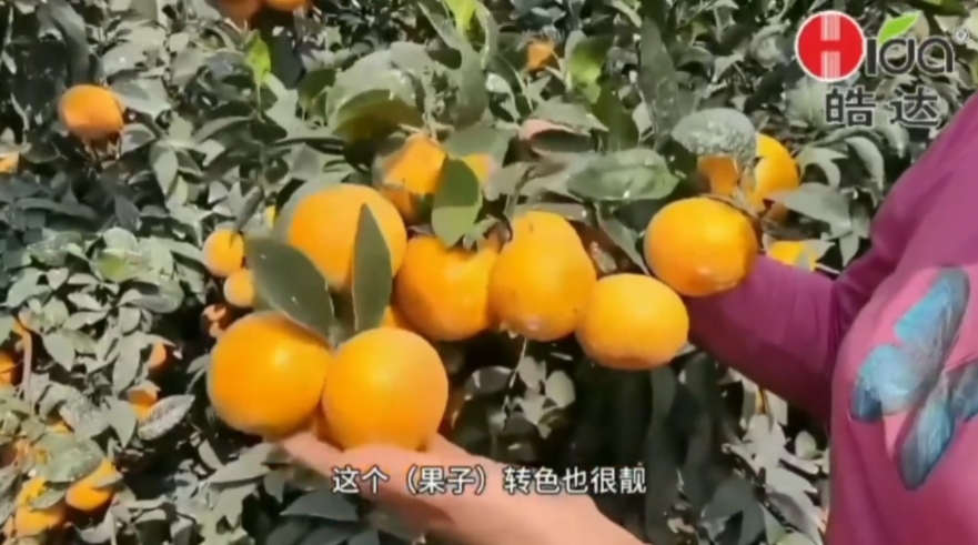 梁老板的沃柑從9月中旬開始第一次用轉(zhuǎn)色皓達有機水溶肥(俗稱白皓達)噴果。