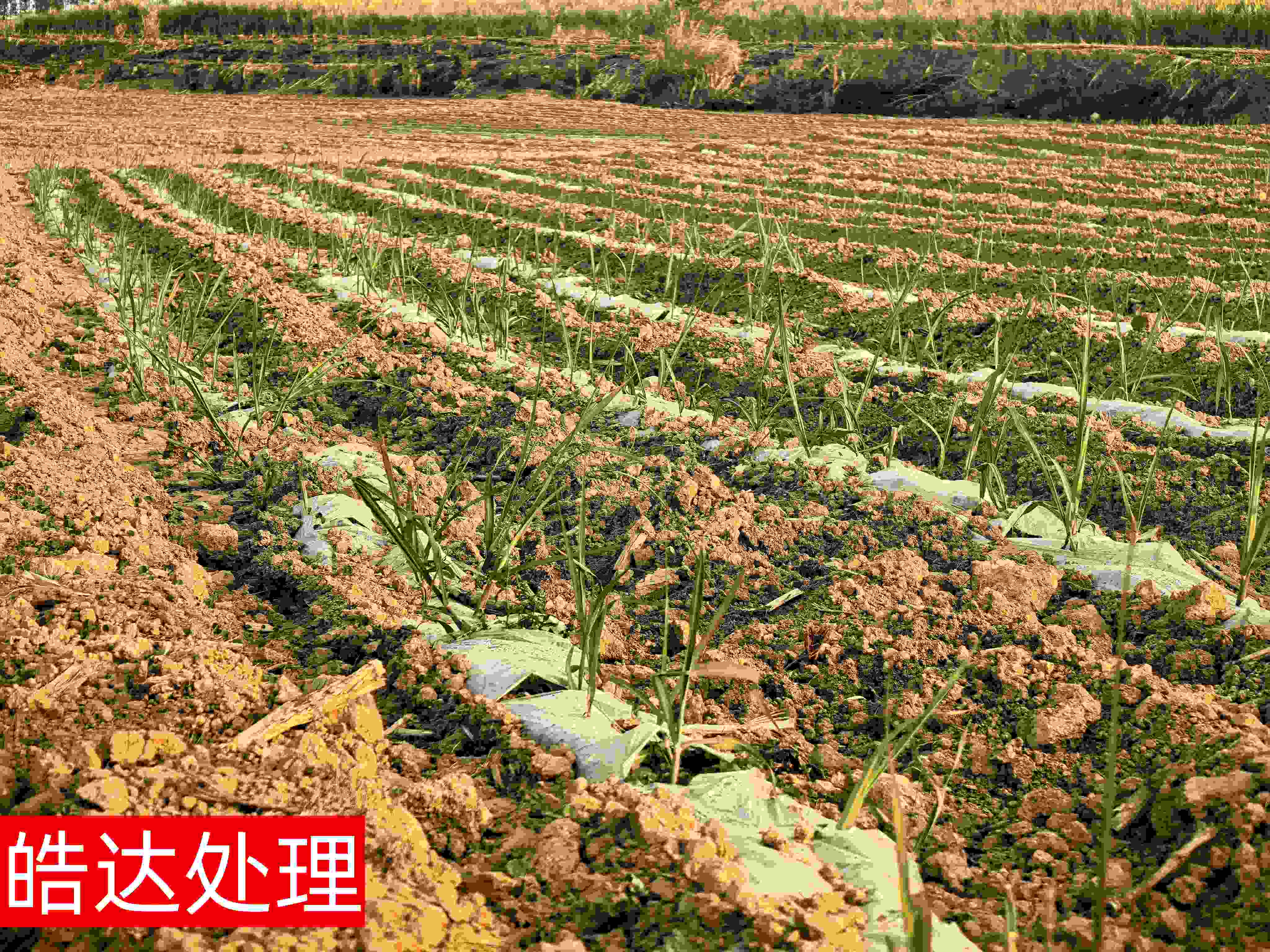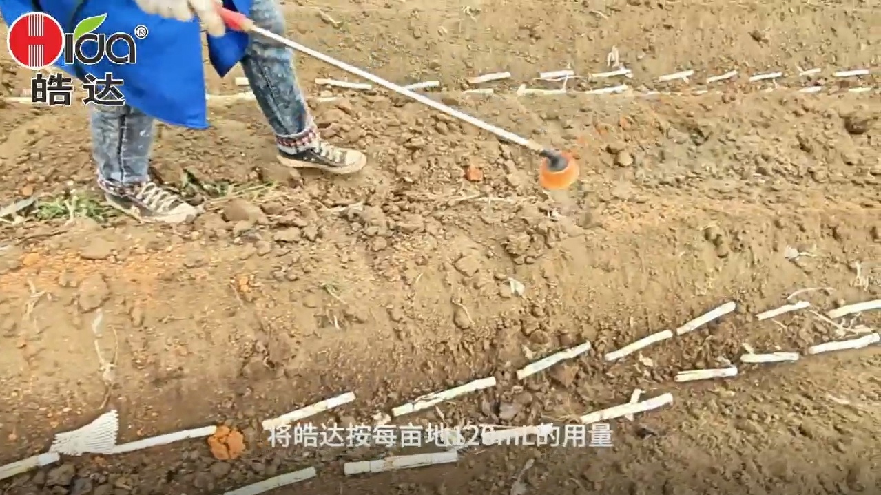 這里選用雙芽段脫毒苗,擺入種植溝后,將皓達(dá)按每畝120mL的用量300倍均勻噴施在種苗和土壤上,馬上覆土。噴施皓達(dá)可增加土壤有益菌群落繁衍,促進(jìn)根系生長;出芽率高、芽頭壯,增加幼苗抗病能力。