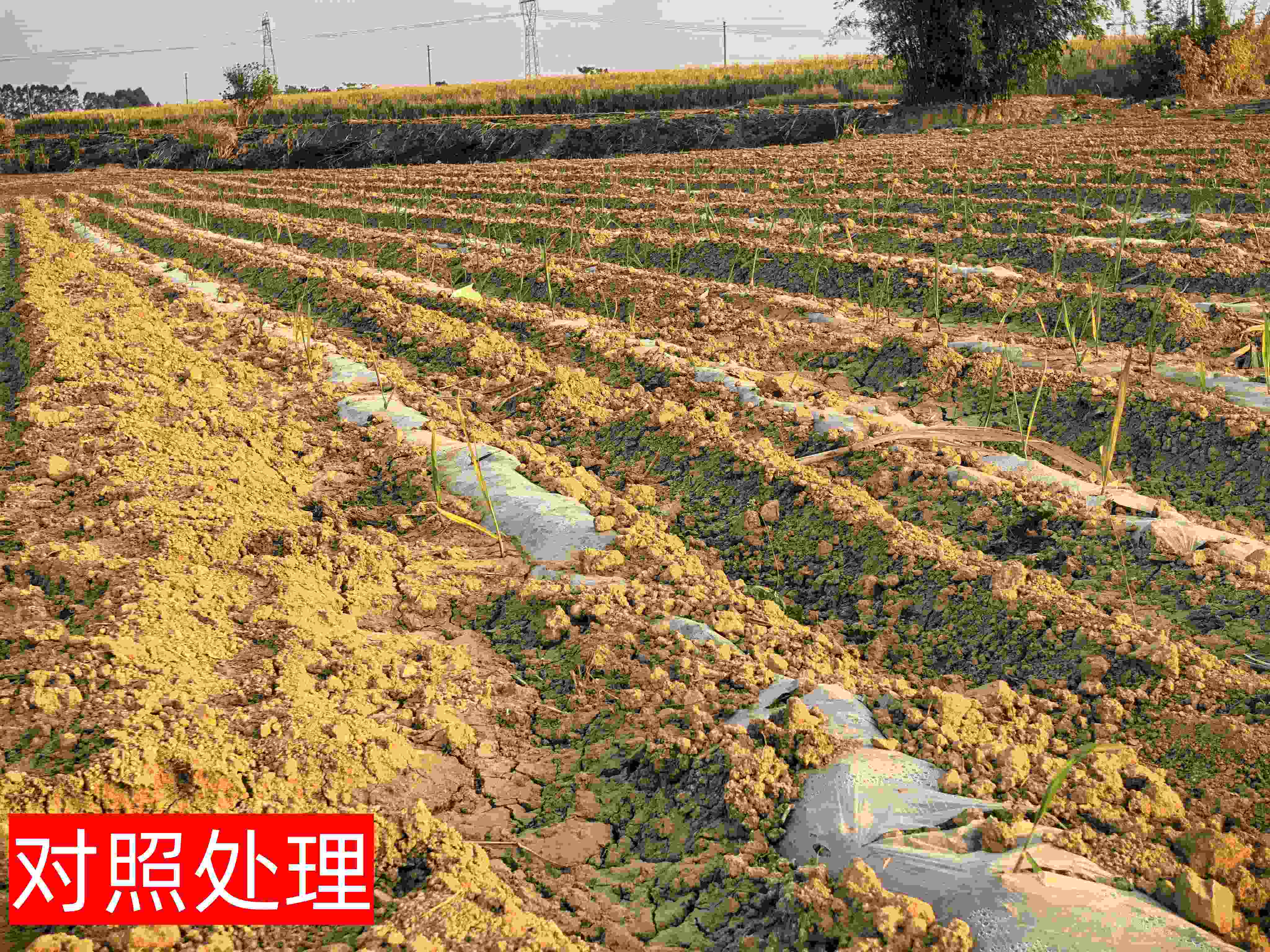 圖2 對(duì)照處理糖蔗出苗率低、稀疏 2025年1月18日