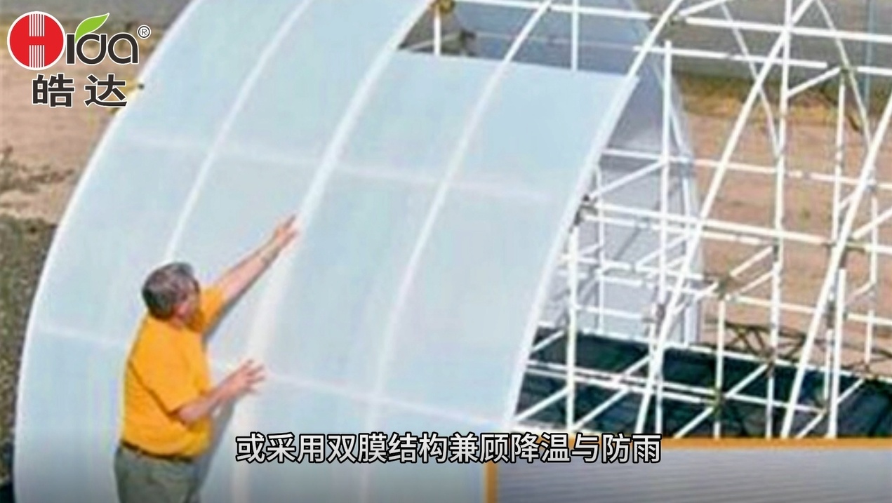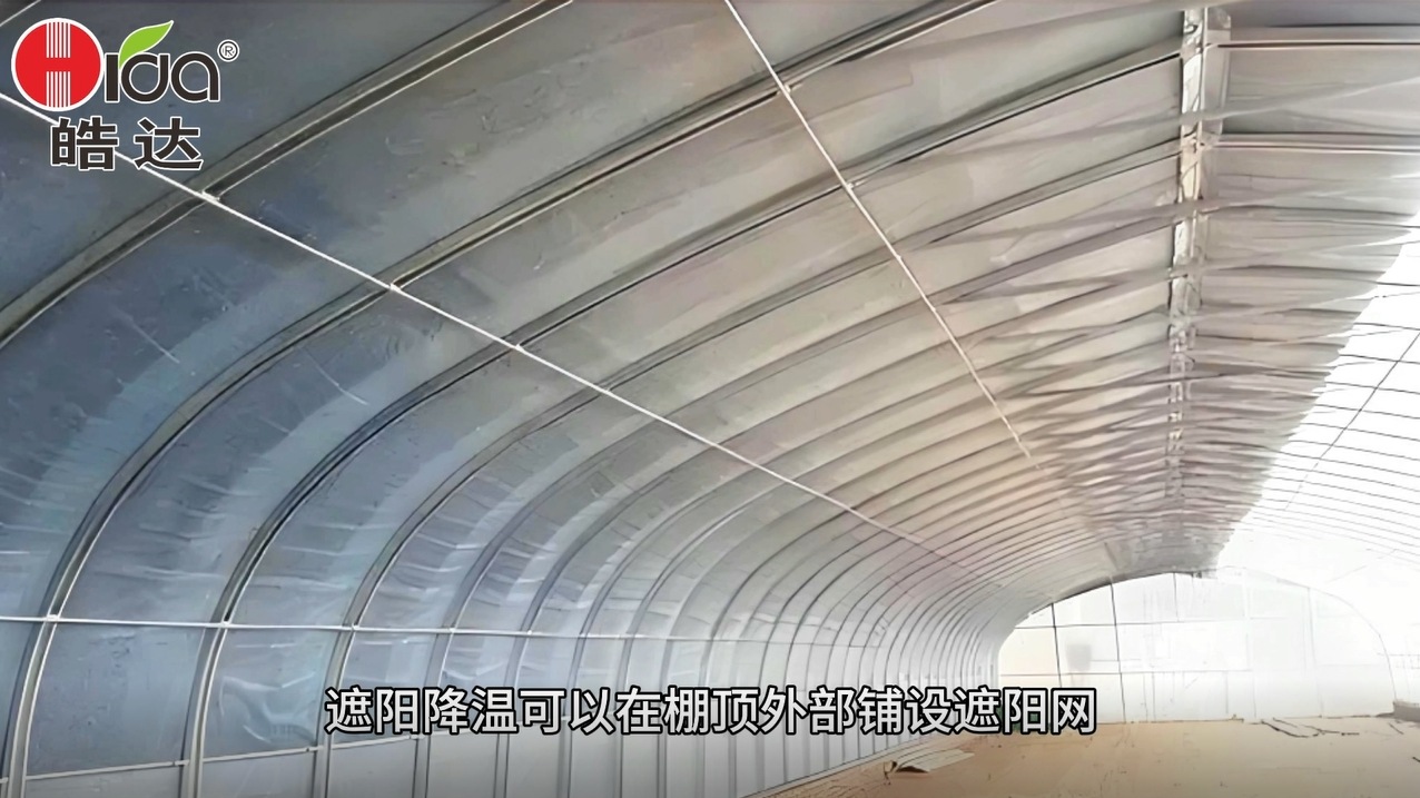 - 在棚頂外部鋪設遮光率30%-70%的遮陽網(根據作物需光量選擇),可降低棚內溫度3-8℃。