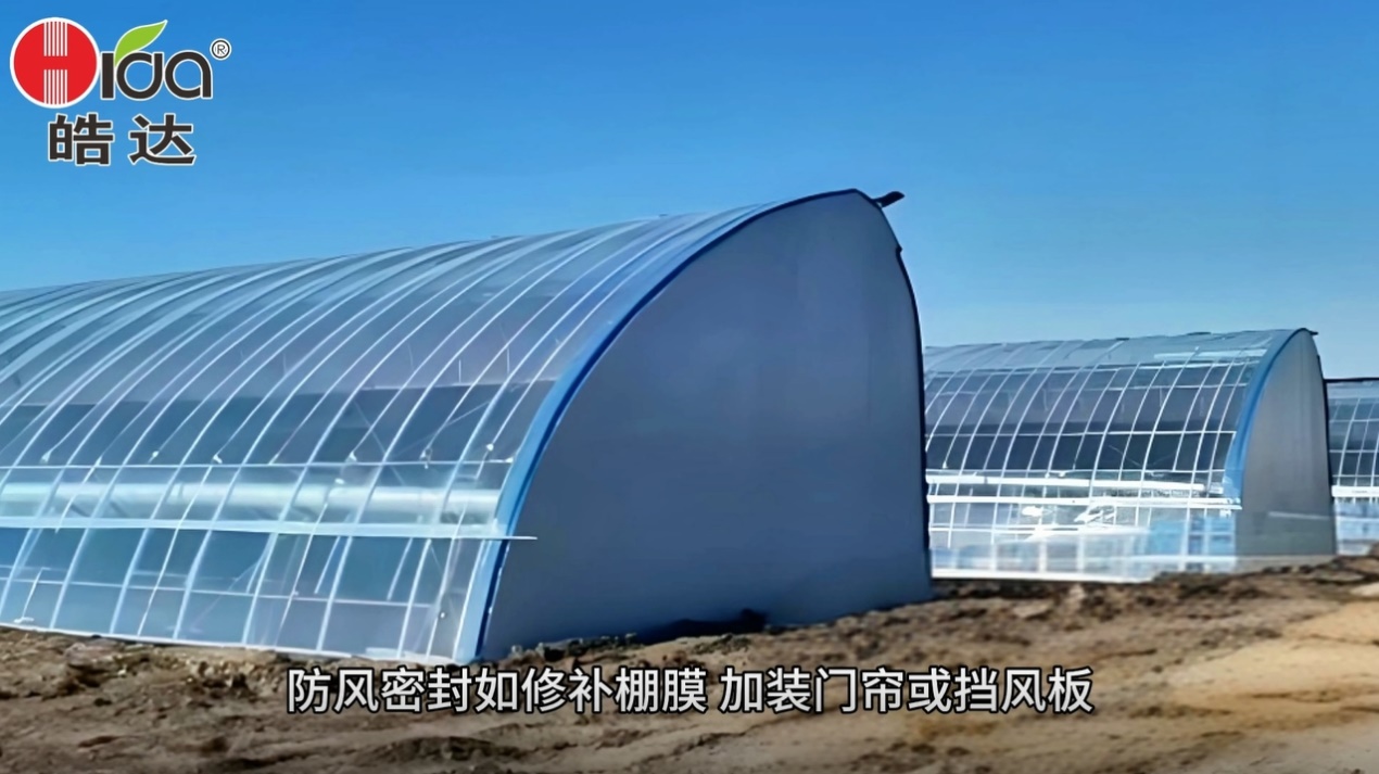 - 檢查并修補(bǔ)棚膜破損處,門口加裝雙層門簾或擋風(fēng)板。
