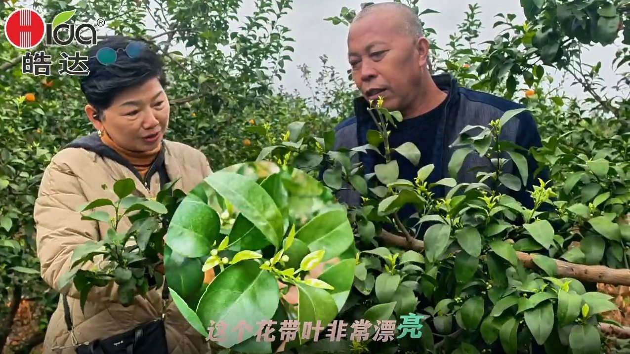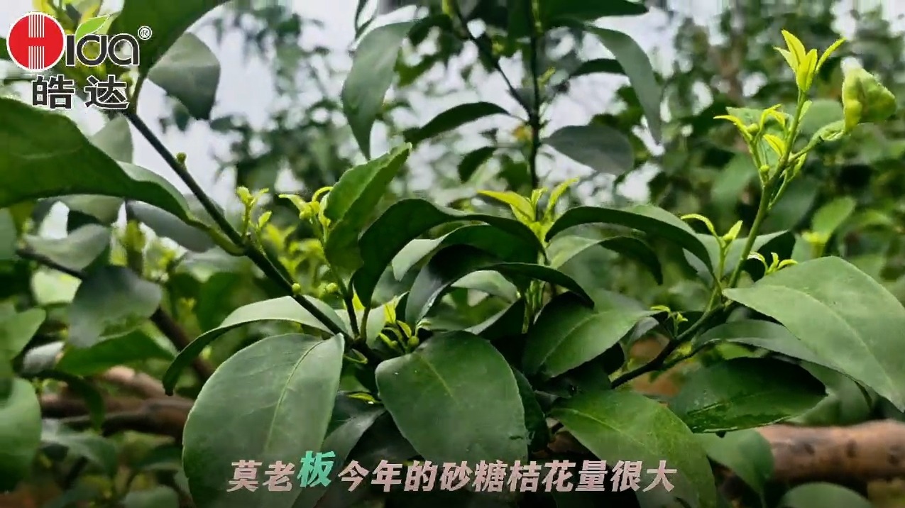 莫老板的砂糖橘花帶葉生長非常漂亮,新梢老熟,花蕾壯碩,原來莫老板去年就用過4次皓達營養套餐,效果非常好,收益也可觀。今年已經用皓達葉噴1次、淋根1次。