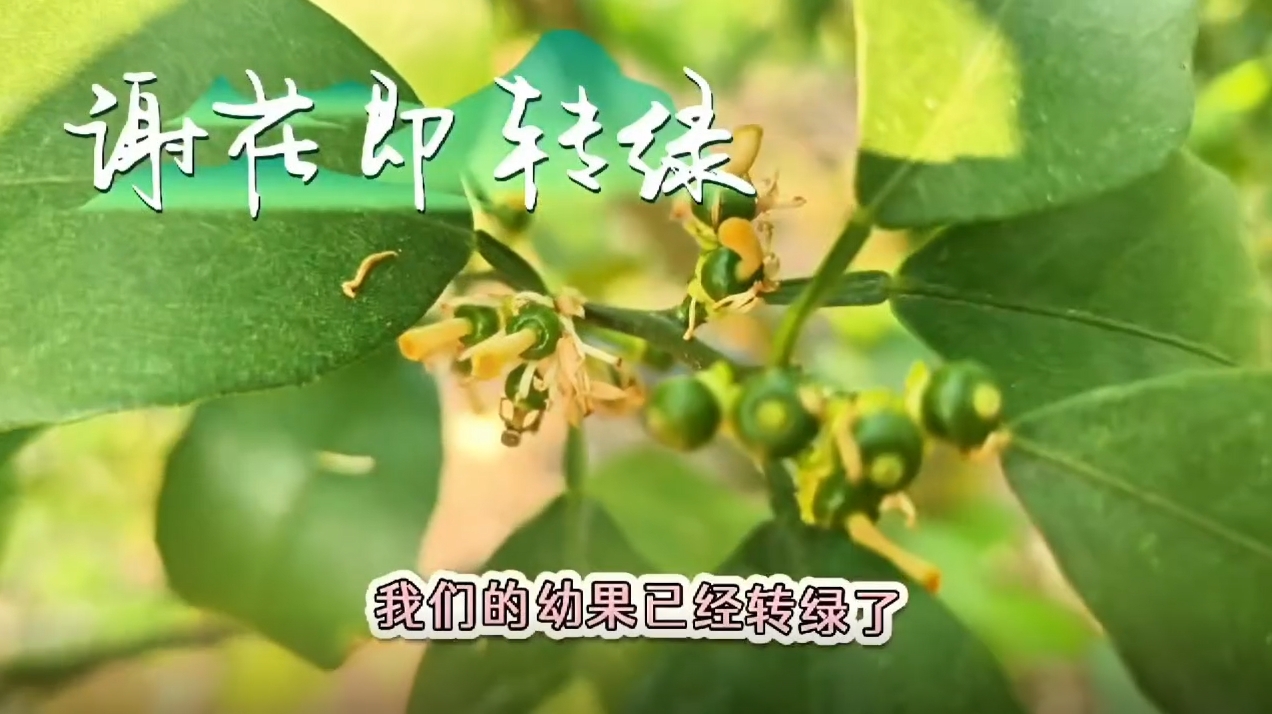沃柑花瓣還沒完全掉,幼果已經轉綠,皓達控旺保果非常成功,果園老板很滿意。