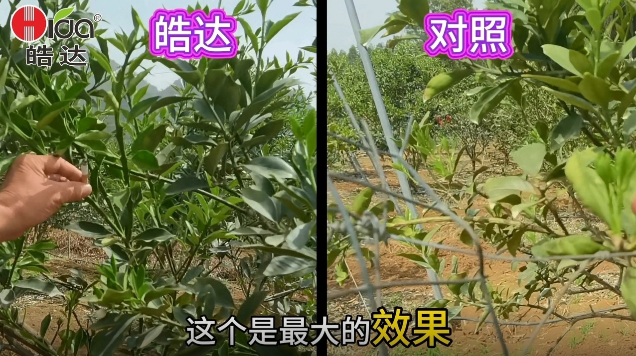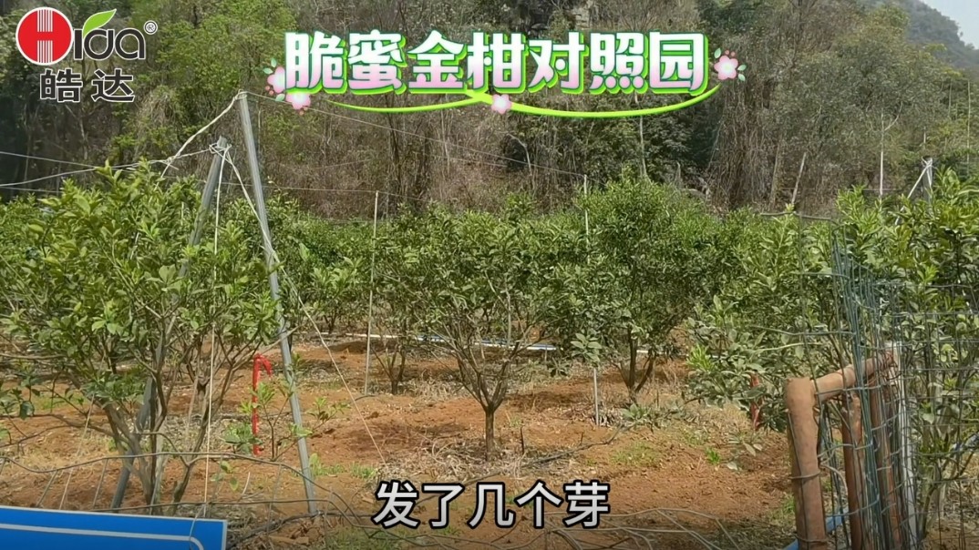 現在正值廣西脆蜜金柑抽芽的時期,4月15日皓達農化服務技術團隊來到黃總的皓達脆蜜金柑果園回訪,一見面黃總就對用了皓達套餐的脆蜜金柑贊不絕口。我們一起來看看皓達果園和對照果園的對比: