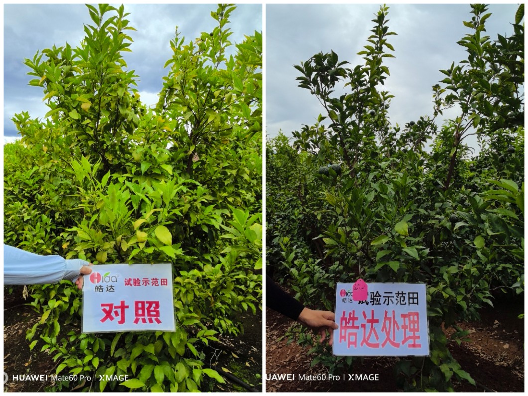 我們這里給一個案例大家看看,老板采完果之后,感覺這個樹葉特別的黃,用皓達淋根了一次,每棵樹15-20毫升,淋完后不久葉片恢復得很快,轉綠了。