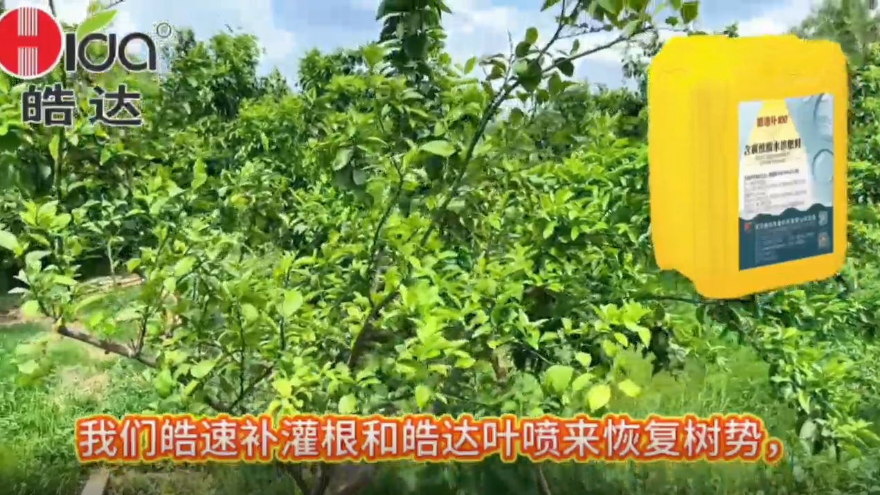通過用皓速補灌根和皓達葉面噴施來恢復樹勢,梢也油亮,果也轉綠了。