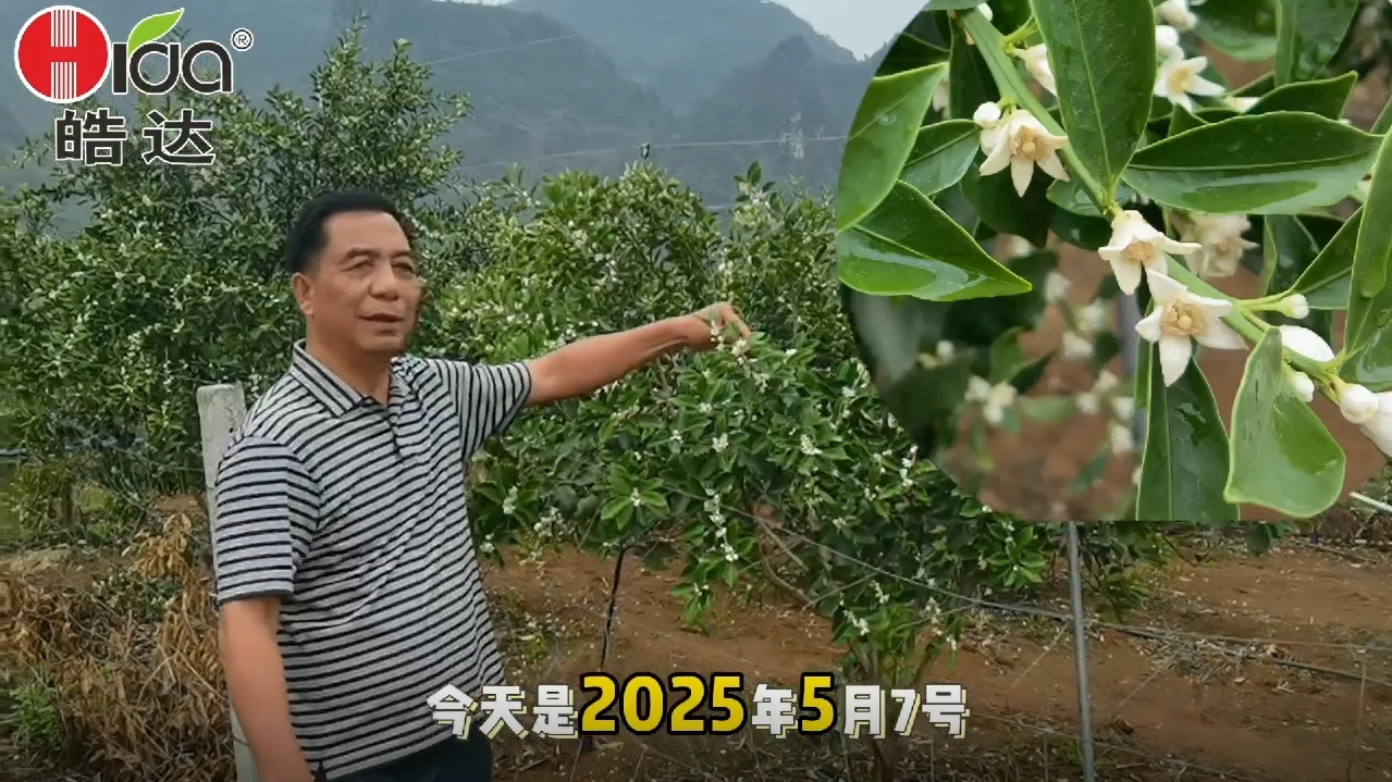 2025年5月7日黃總的脆蜜金柑迎來今年第一次開花,皓達農化服務技術團隊應邀來到黃總的脆蜜金柑果園回訪參觀,同時分享黃總為什么近30年堅持全程使用皓達方案管理脆蜜果園。