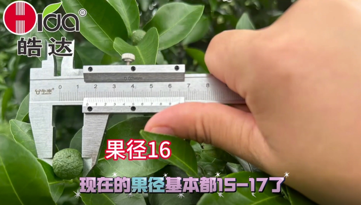 5月的惡劣天氣過后,您的果保住了嗎?九叔的砂糖橘果園一直在使用我們皓達(dá)方案,現(xiàn)在的果徑基本都15-17mm