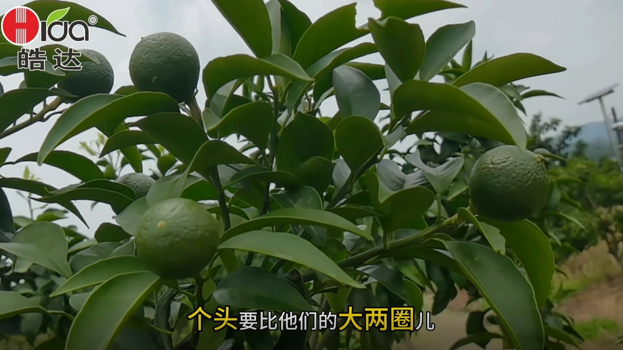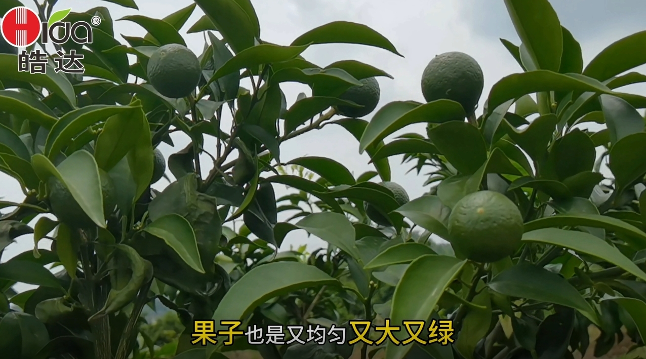 近日皓達農化技術人員對四川宇雄飛防負責人進行了采訪,該負責人表示,我們川南的愛媛品種是2023年引進種植的,廣西飛防的同行分享用皓達營養保果效果非常好,所以今年4月我們在愛媛上面使用皓達,為了驗證這個皓達的保果效果,我特意選了一塊地力比較差(泥土少沙多)的地塊試驗,按照皓達技術的指導來做,一個月噴施三次皓達方案,皓達保果技術的確領先: