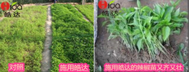 效果說明:施用皓達后,辣椒返苗期縮短、成活率高、抑制高腳苗的生長、有控旺長的作用。