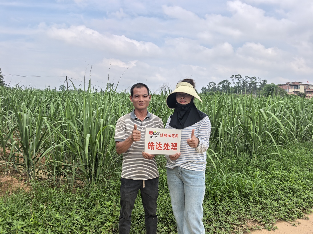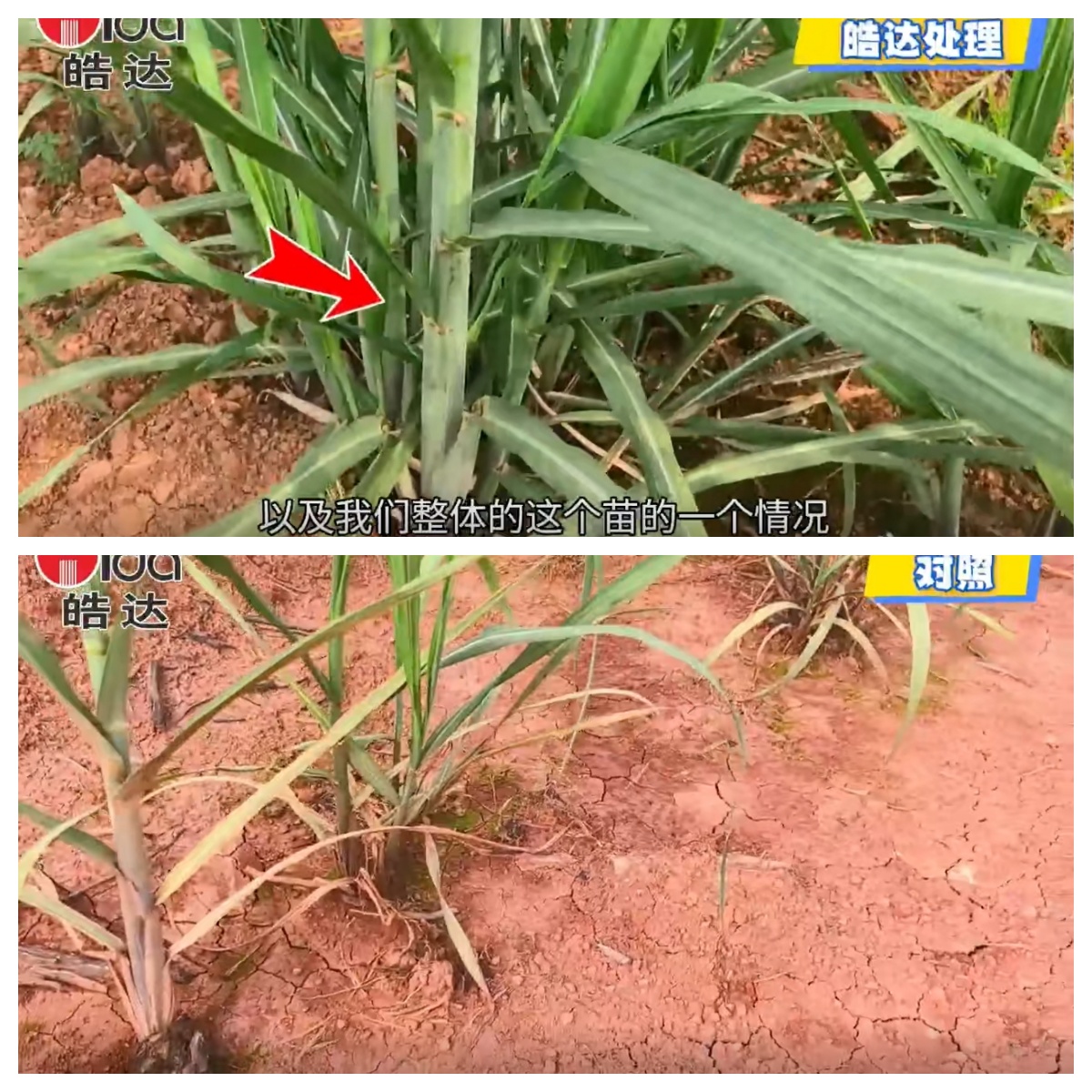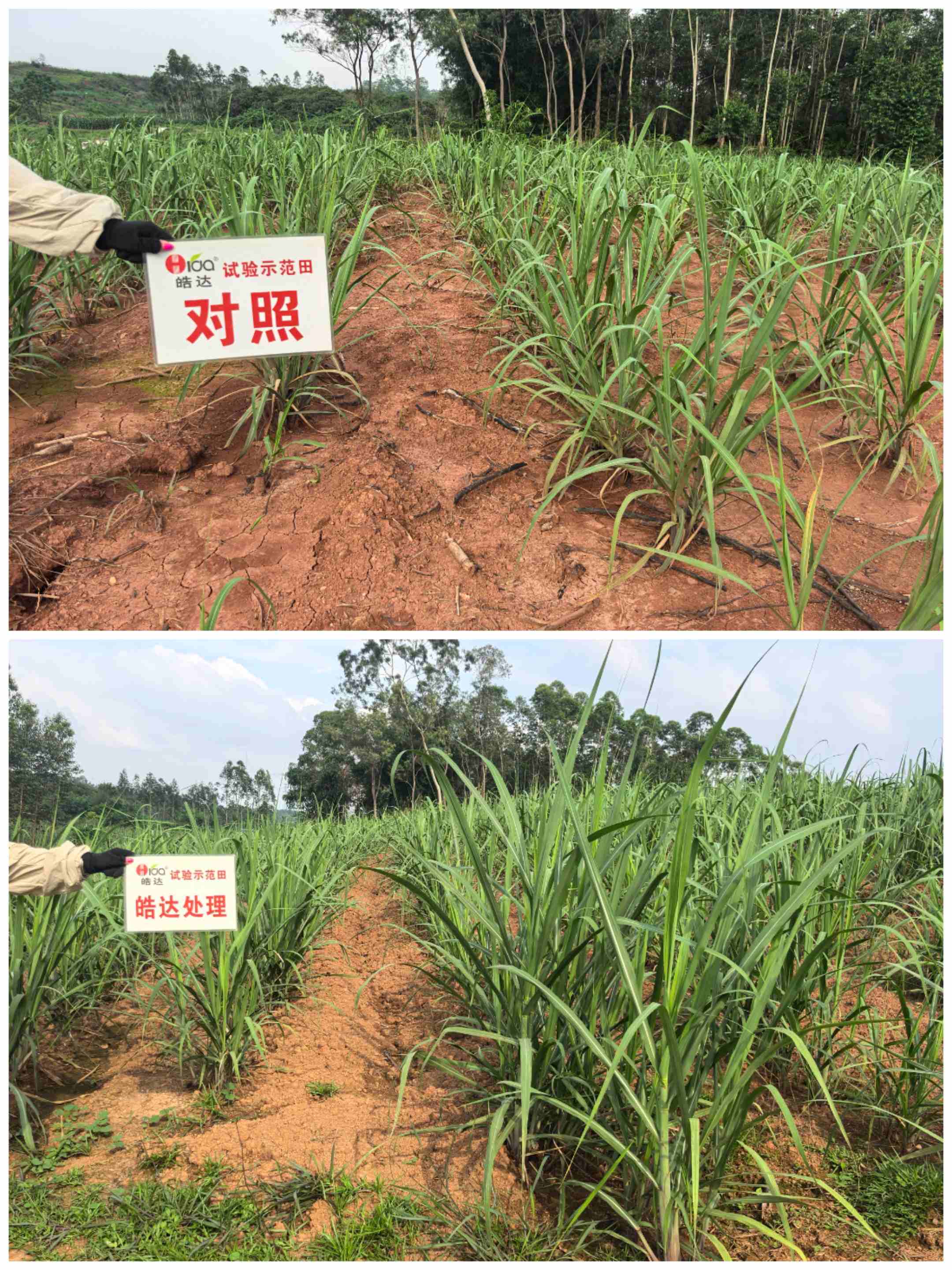 3.皓達處理的甘蔗長勢高大、茂盛;對照的甘蔗長勢弱小、稀疏。