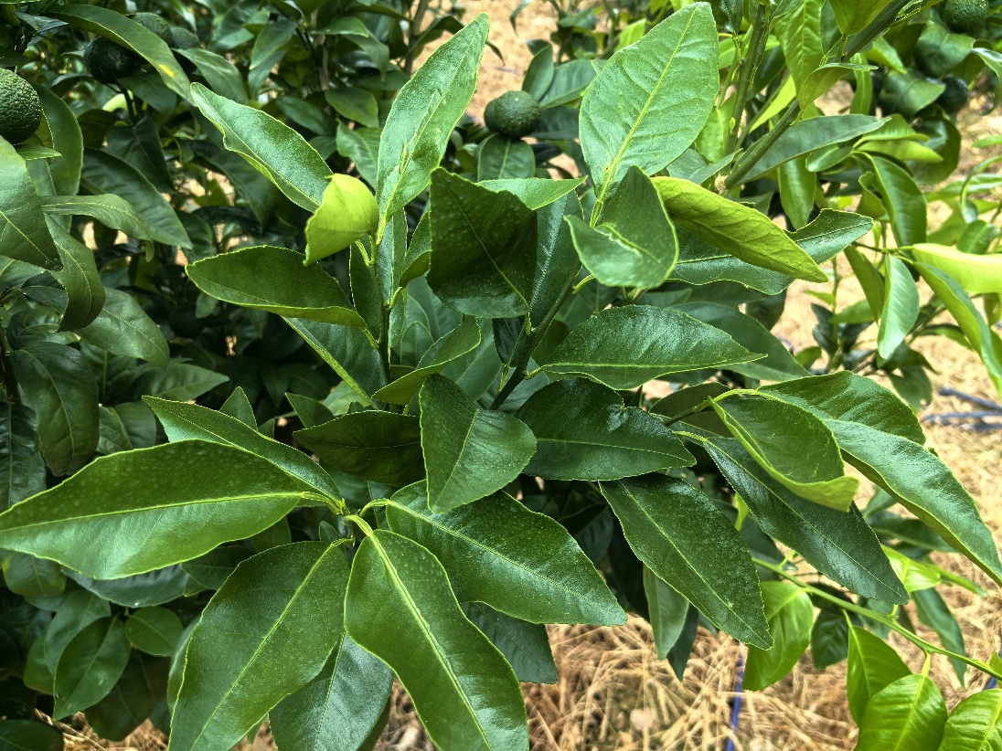 目前沃柑用皓達葉面噴施了3次,皓速補淋根2次,整片果園樹勢健壯、碩果累累,劉老板希望成功的經驗與果農朋友們一起分享,共同致富。