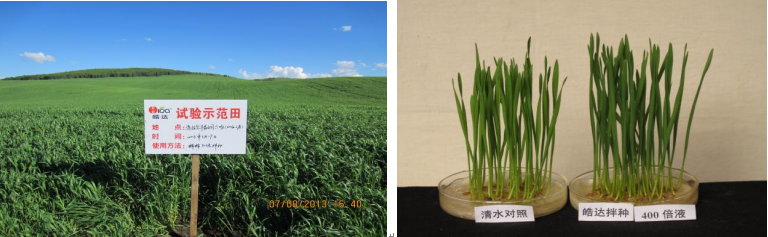 施肥時期:播種期 時期問題: 芽率低下,易發生土傳病害; 施肥方案: 拌種:每公斤種子拌皓達功能肥5mL; 施肥效果: 促進麥種萌發,提高麥種發芽率;防止種傳病害和土傳病害,使麥苗健康生長。